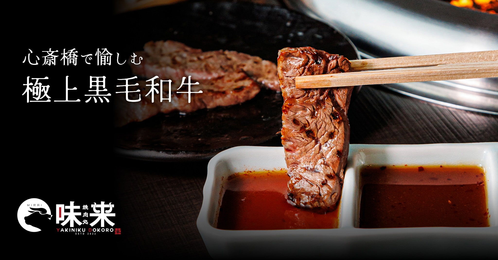 大阪・心斎橋駅近くの『焼肉処 味来(みらい)』では、黒毛和牛の中でも“特別にうまい部分だけ”を厳選してご提供。全席に無煙ロースターを完備しているため、煙やにおいを気にせず快適にお楽しみいただけます。半個室・完全個室も複数ご用意しており、女子会やデートはもちろん、飲み会や宴会にも最適。心ゆくまで贅沢なひとときをお過ごしください。